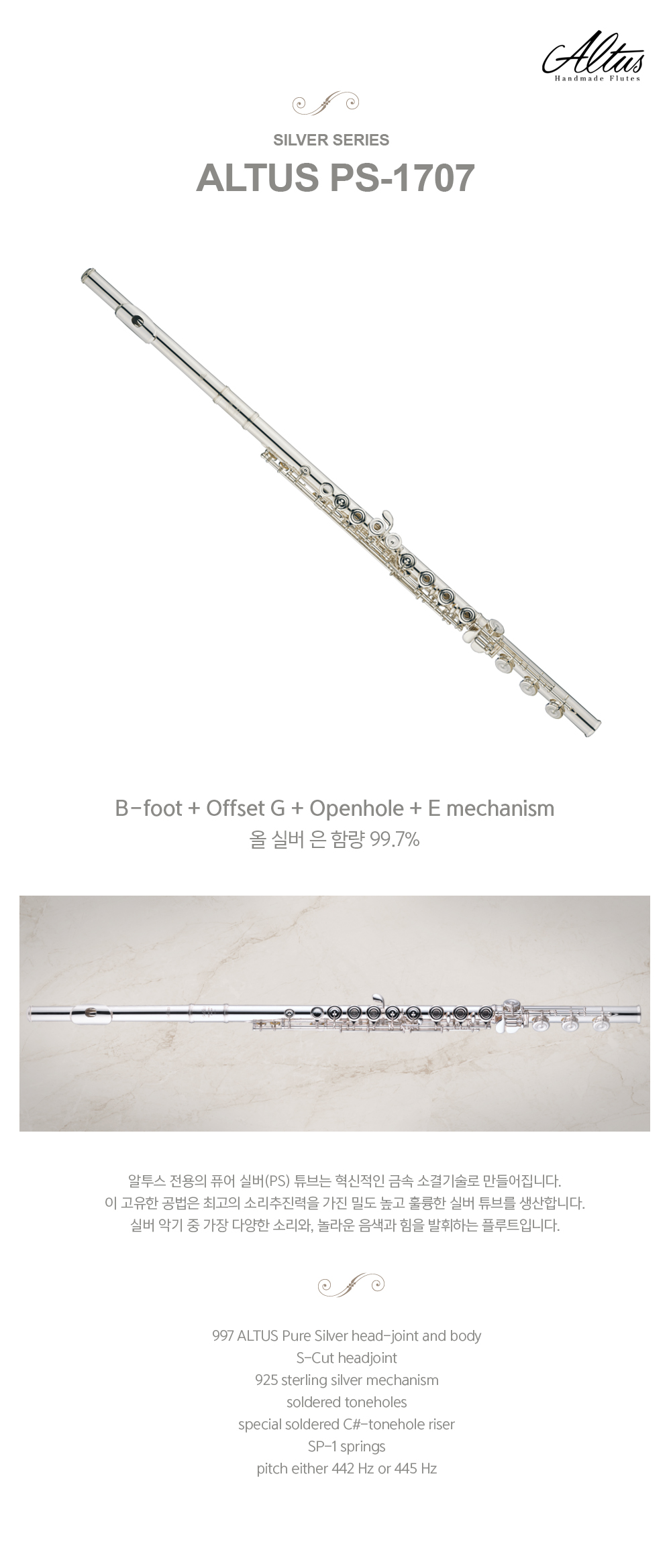 [Altus] 알투스 플루트 / 플룻 핸드메이드 PS-1707 올실버 은함량 99.7 (SR 톤 홀)
